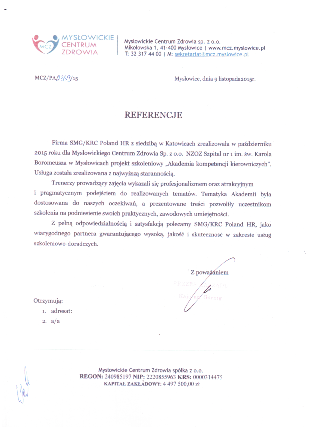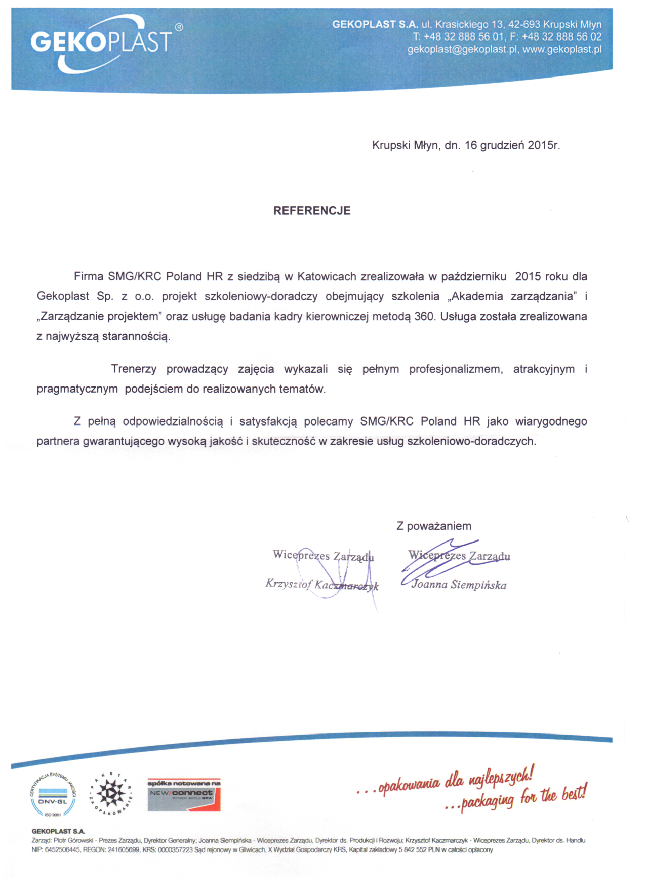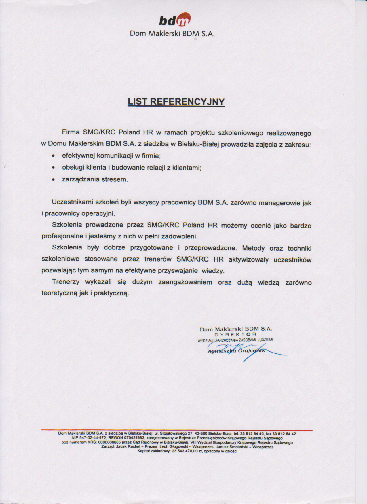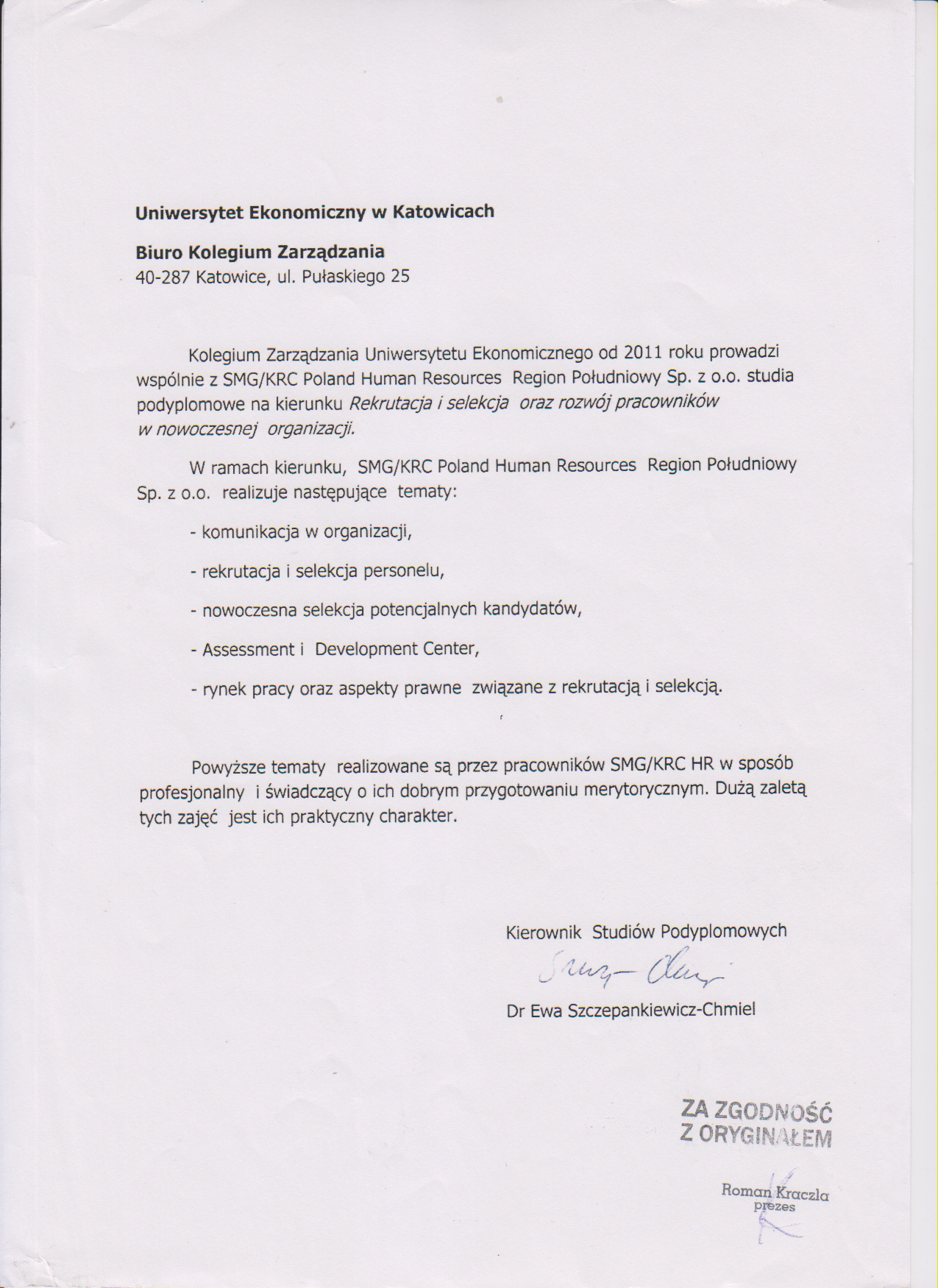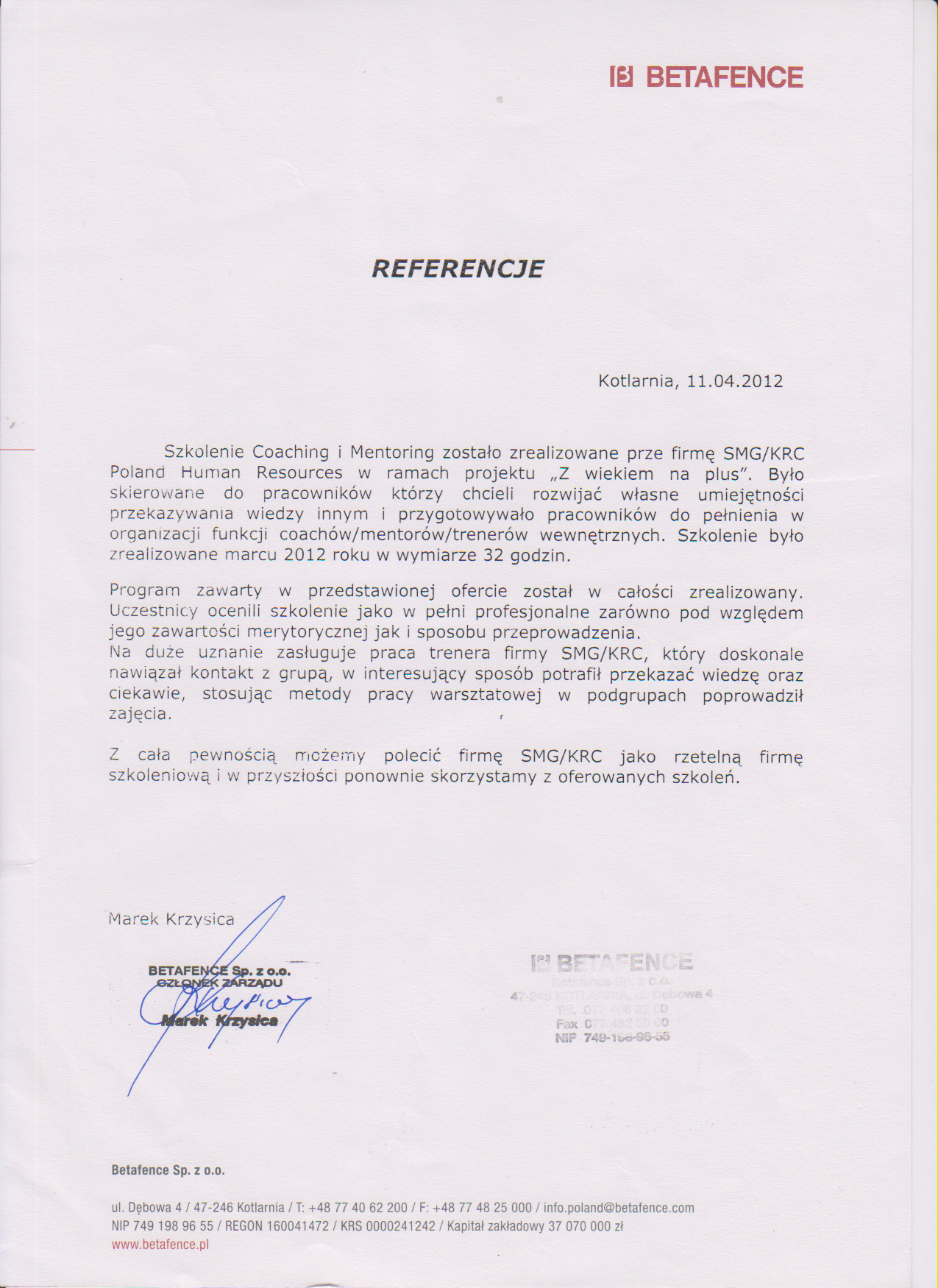 Firma SMG/KRC Poland Human Resources jest to zespół wykwalifikowanych praktyków, którzy bazują na swoim doświadczeniu wykonują powierzone im zadania.