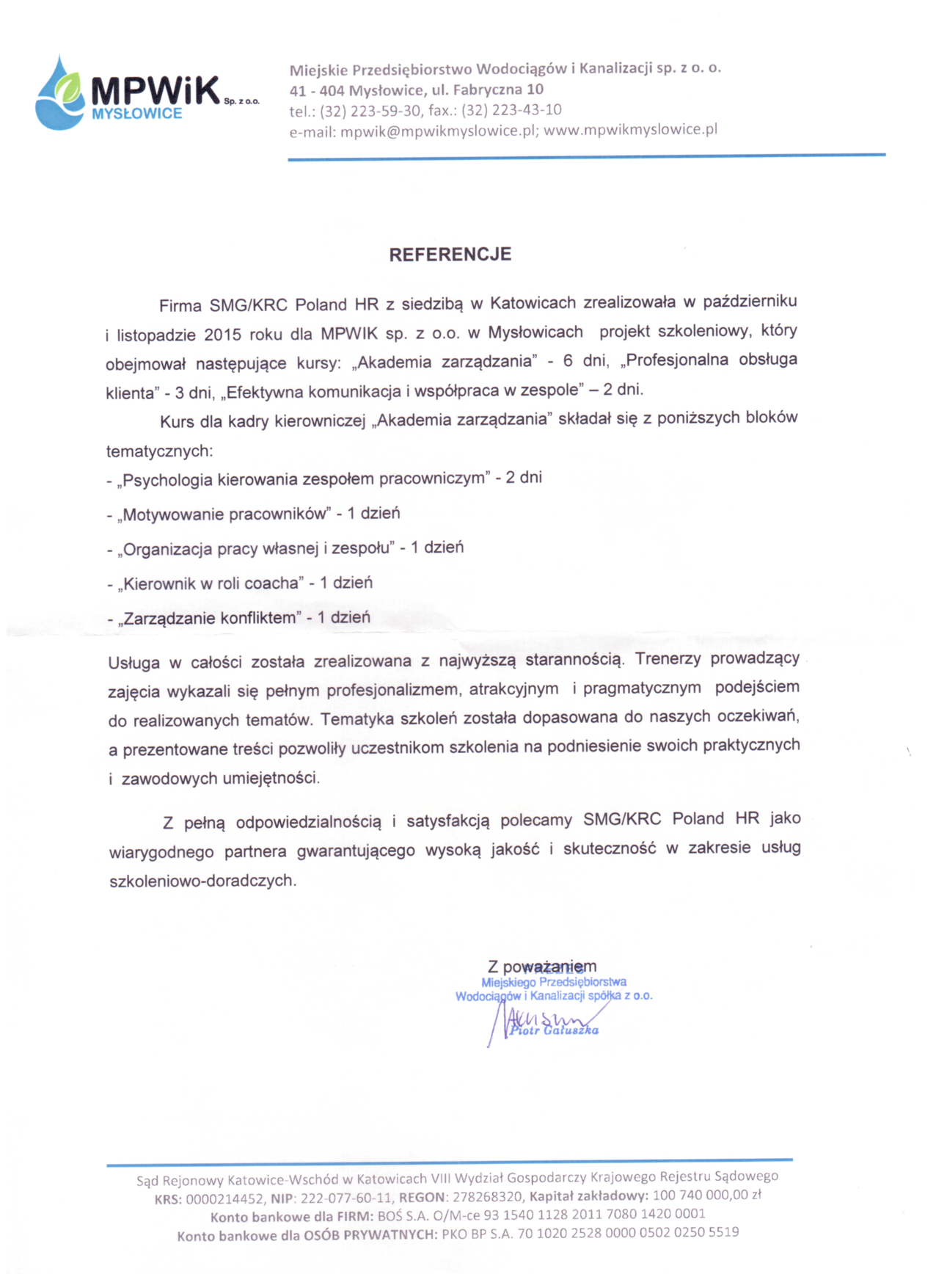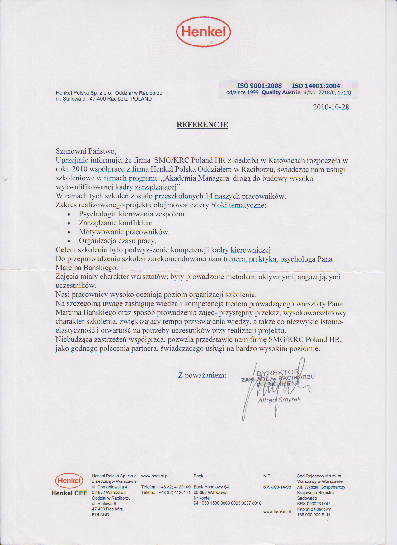 Wszystkie usługi które świadczymy są indywidualnie dopasowane do potrzeb naszych klientów. Regulamin szkoleń oraz reklamacji dostępny jest w siedzibie SMG/KRC HR. Od momentu naszego powstania aż do chwili obecnej pomyślnie przeszkoliliśmy tysiące pracowników odwiedziliśmy setki przedsiębiorstw. Nasz zespół sprostał każdemu zadaniu wdrażając nowe rozwiązania i udzielając wsparcia naszym klientom.